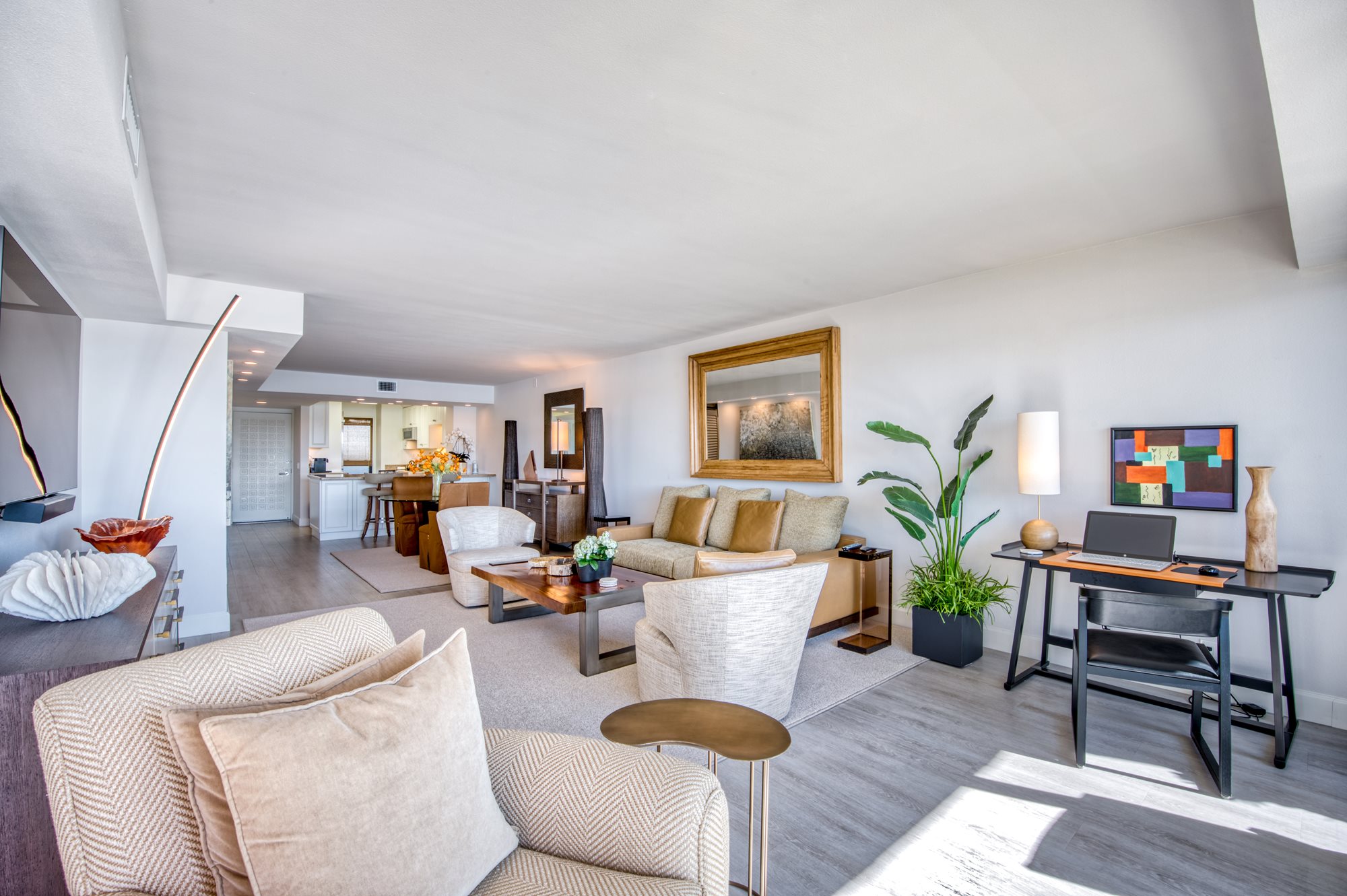 This exceptional corner suite residence boasts stunning panoramic views of the coastline and the glittering harbor, providing an unparalleled backdrop for your coastal lifestyle. With an abundance of natural light, sophisticated design, and thoughtful attention to detail, this corner suite offers an extraordinary living experience, inviting you to indulge in the coastal charm and elegance of Newport Beach.