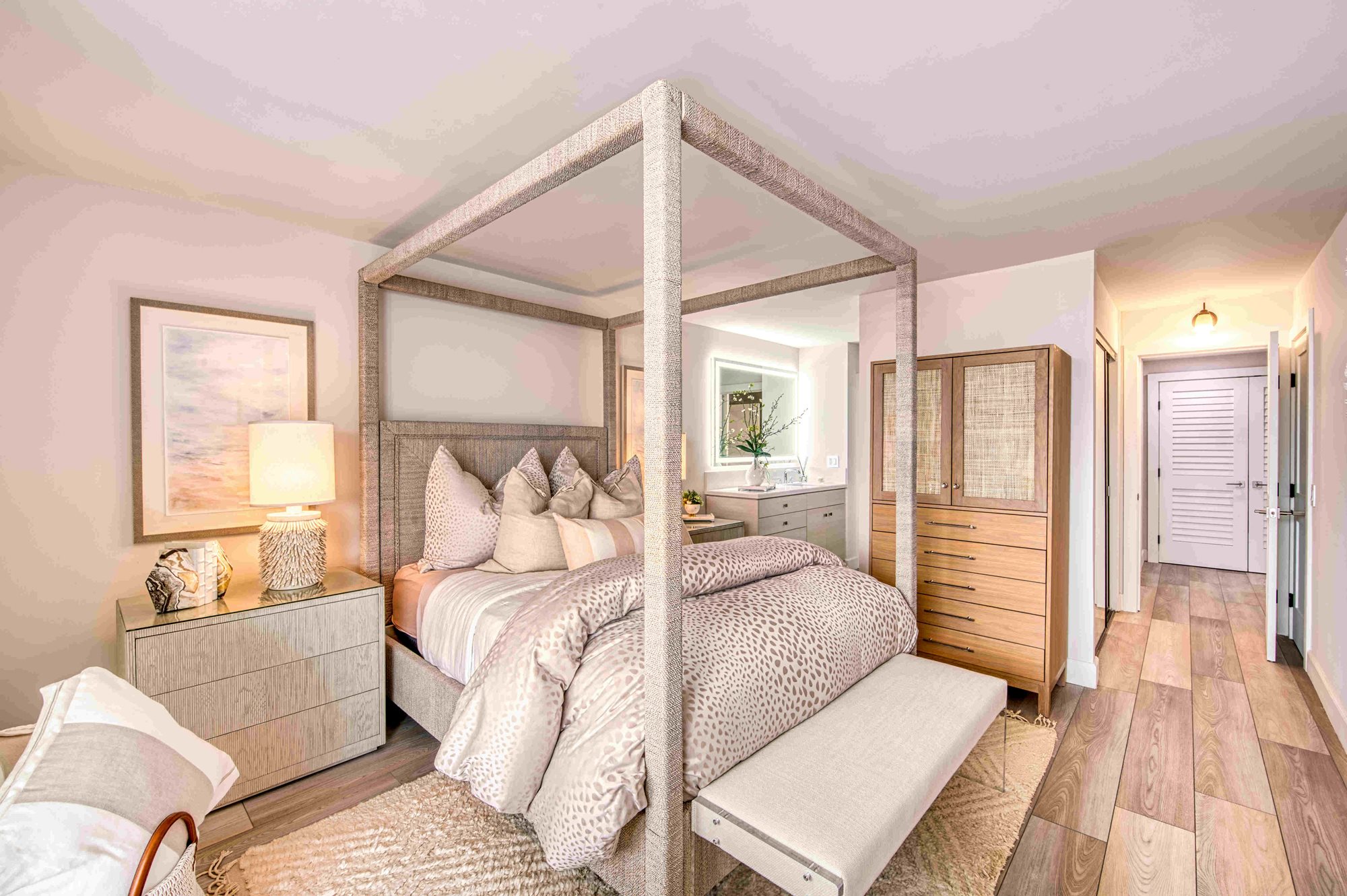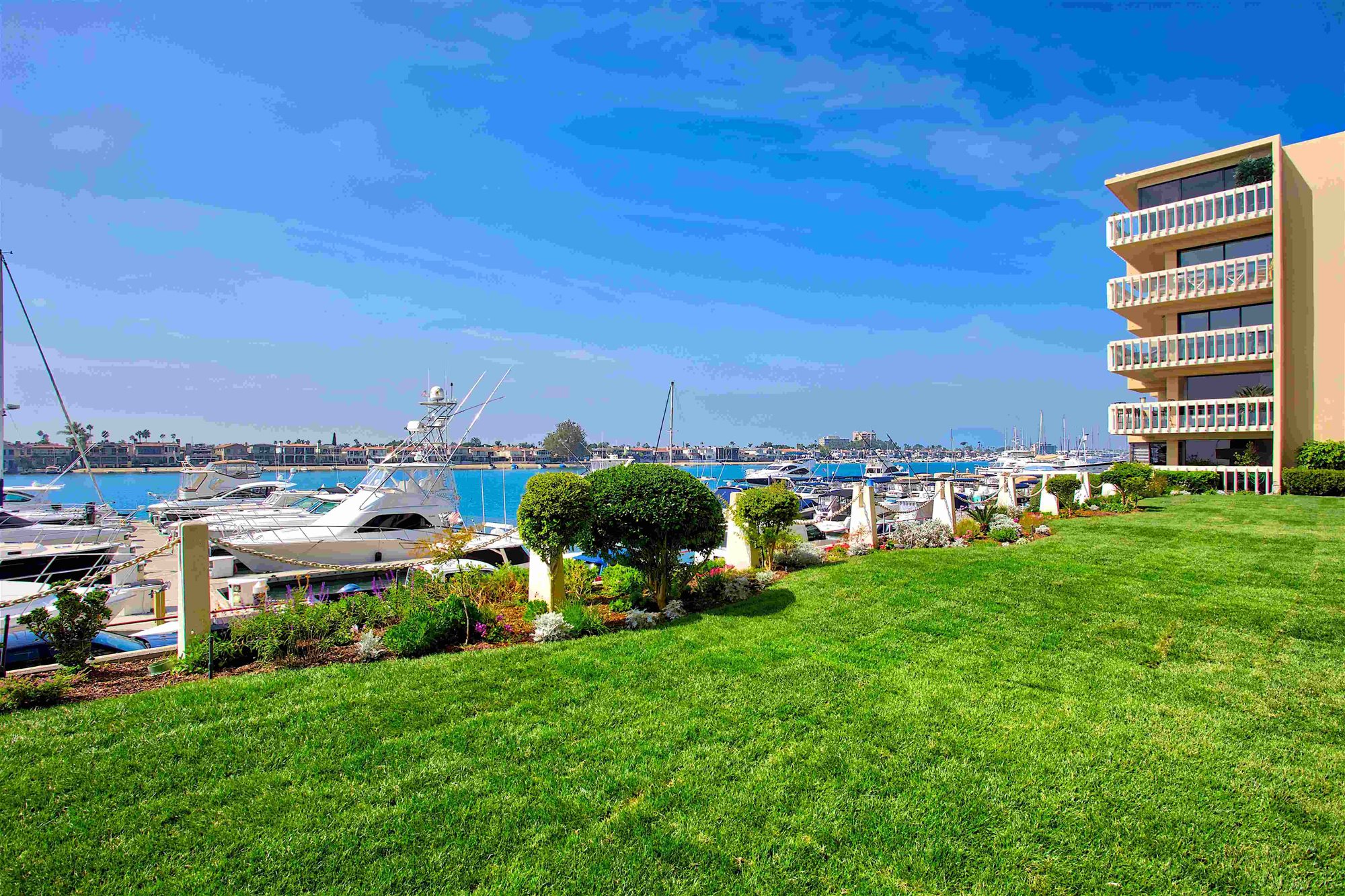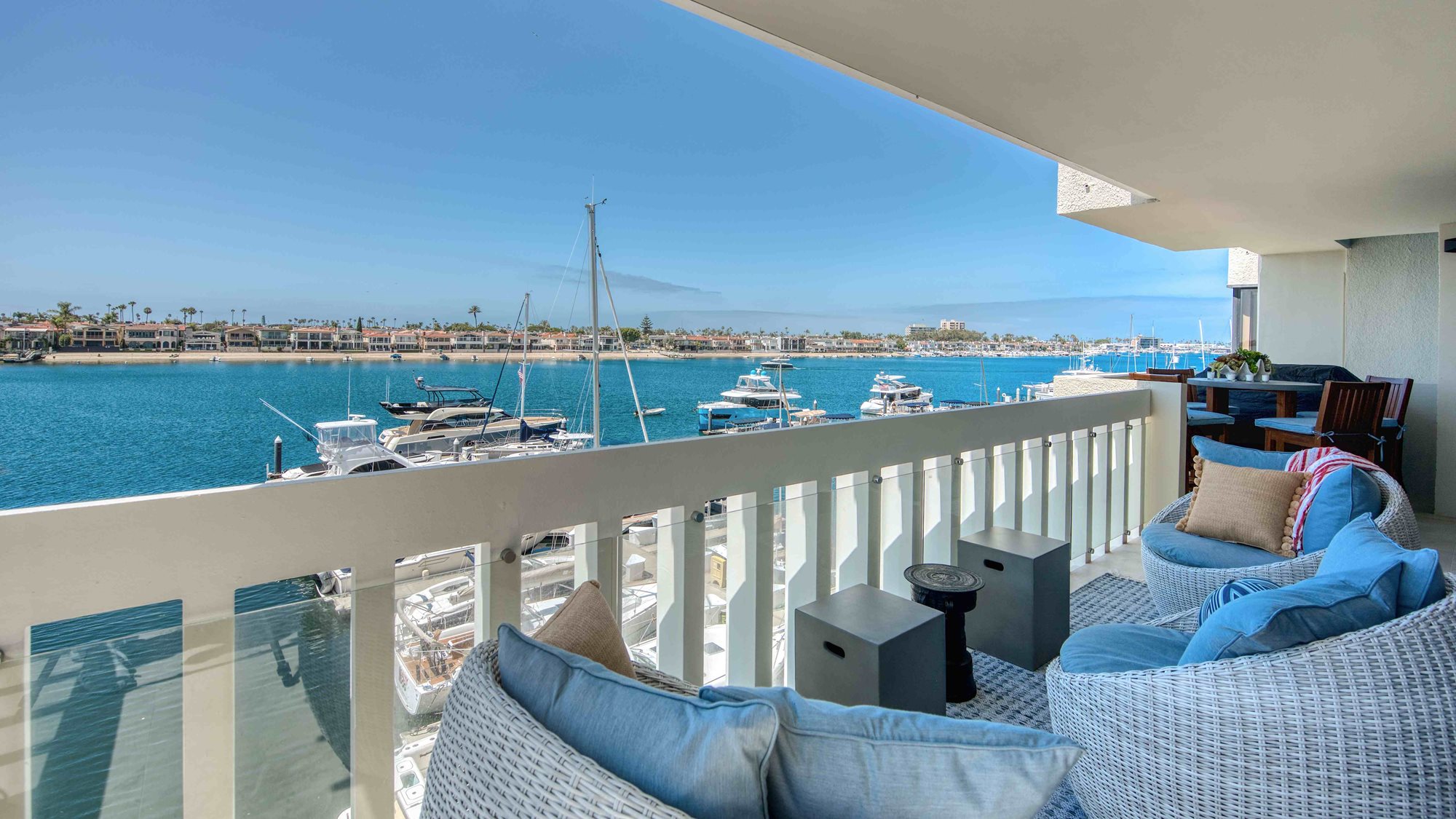 This rarely available suite is ideal for families, couples, and for hosting guests. Relax in 1,989 square feet of waterfront living space, including two bedrooms, three bathrooms and a den. You’ll enjoy a living area with extraordinary water views up and down the channel from every room, a fireplace, a washing machine and dryer, and a spacious 522-square foot wrap-around terrace which is accessible from both bedrooms and the living room.